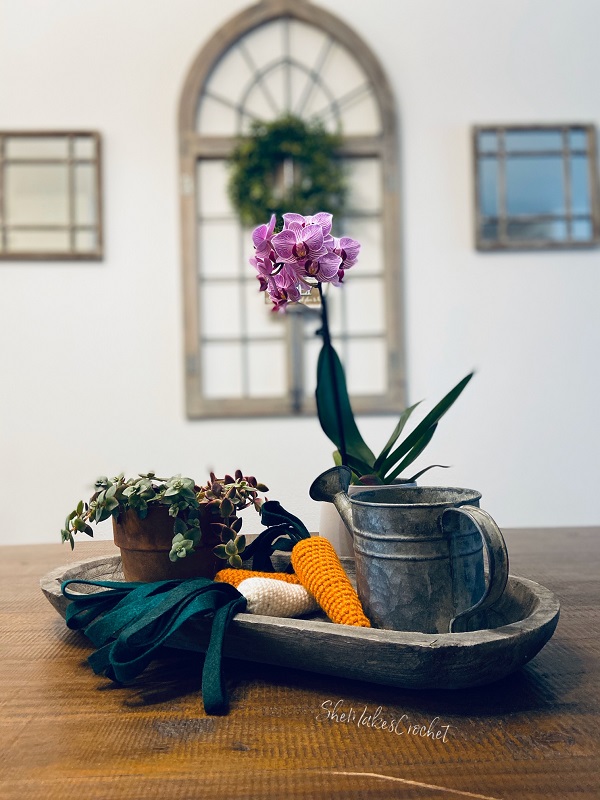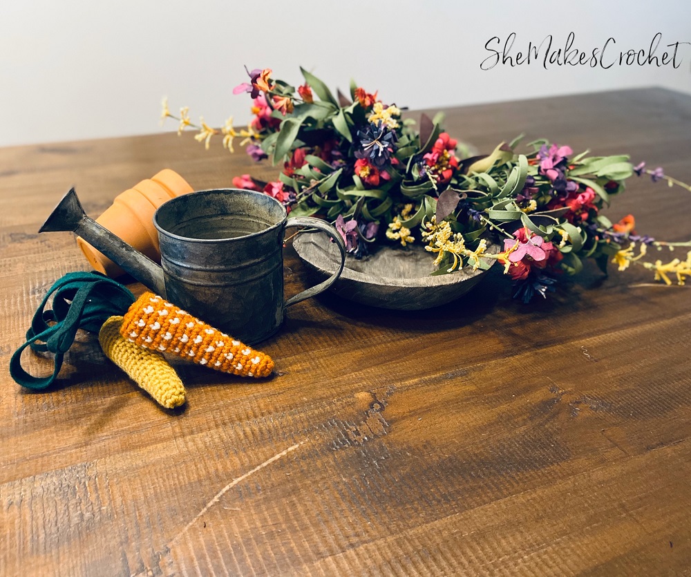 Who loves quick and versatile projects? I know I do! Well, if I’m being honest, I love most types of projects. If you are looking for something quick and versatile, whatever your preference, these carrots are just that! You can easily make them larger or smaller. I did crochet carrot tops and felt carrot tops – I love them both and they are both super simple. You could make them solid color or in cute patterns. You can make one or several. I think you get the point! I have so many ideas for these and I can’t wait to see how you use them. Here are just a few of my ideas: