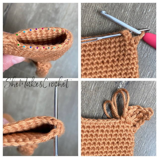 If you don’t sew or don’t want or like to use felt, I would recommend chaining a length (maybe 10) and working a couple SC stitches back down before chaining a couple more stitches to make a branch and then working SC stitches back down the branch and the remainder of the starting chain. I’d probably double layer those as well to make them more sturdy. Place to the side and keep a long tail for sewing to the head.