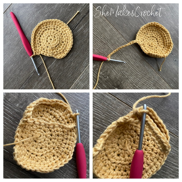 - Round 3: *INC, SC in next three. Repeat from * one time. (10 SC)