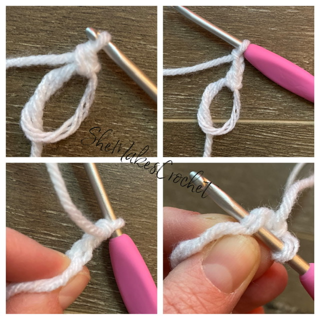- Row 1: CH 4, SC in second CH from hook and remaining two CHs. Turn.