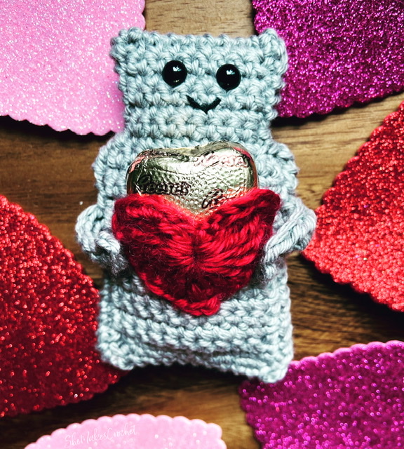 Did you guys know I have a lot of candygram patterns? Last year, I couldn’t stop making these. They are such a quick make. I have had it in the back of my mind to make a couple new ones for this year, but time has been getting away from me and I cannot believe it’s almost Valentine’s Day. I started to think it wouldn’t happen this year, but when I got the idea to make a robot, I quickly decided to combine these two projects and make a robot candygram.