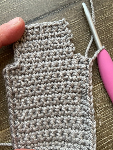 Row 16: CH 1, turn and SC in first 8 stitches — incomplete row. - Row 17: CH 1, turn and SC in 8 stitches across.