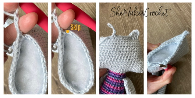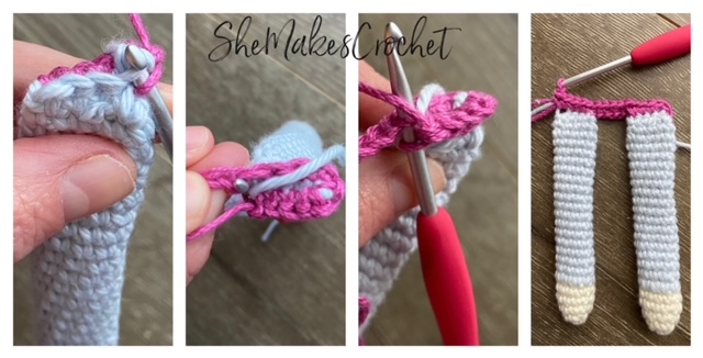 - Round 24: Close off the leg by working 4 SC – see Closing Off instructions in pattern notes above if unsure.