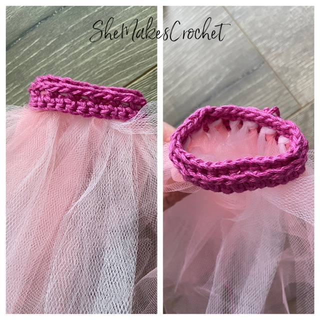 I wanted to close up the small gaps between the loops of tulle for the pink tutu. If you wish to do the same, complete the optional round below.
