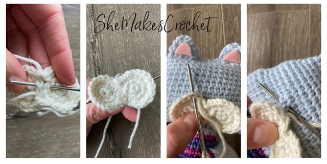 Crochet the contrasting face detail