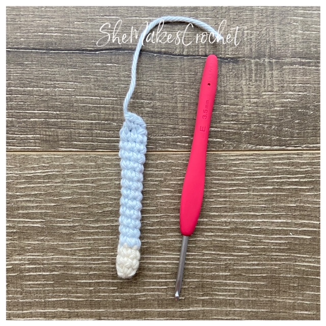 Using the cat color, work the tail – I chose to make a contrasting tip. If you would like to do the same, start with the color you wish to use for the tip and then transition to the main cat color. I chose to do this after 3 rounds of white.