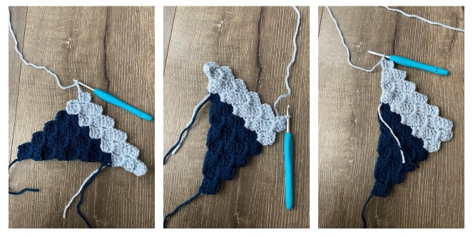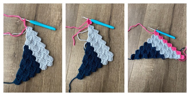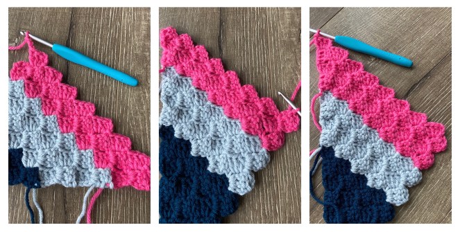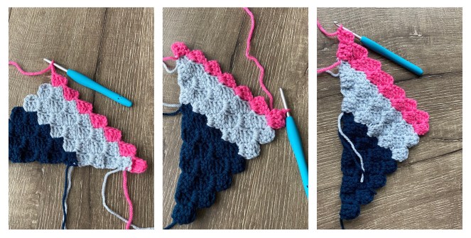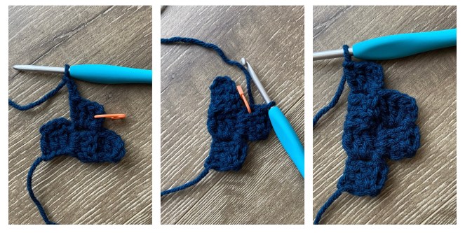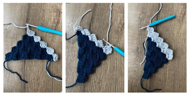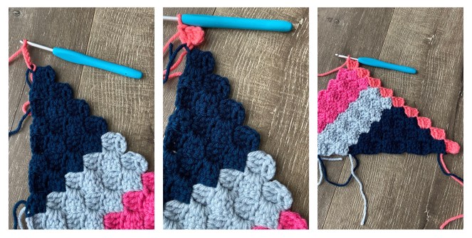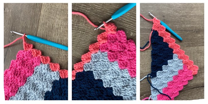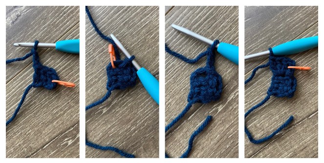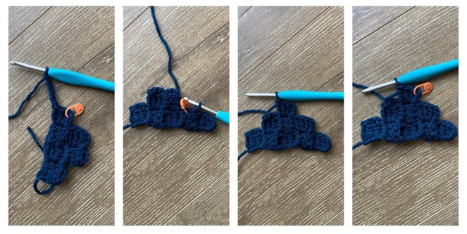 CH 3 and SS into the CH 3 loop of the previous stitch – the C2C stitch you just made. Now work the 8 stitches of the row.